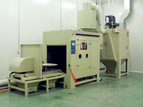 六 砂料分選 通過回收上來的砂料進入砂料循環系統,該砂料循環系統配備了風選裝置,通過風選裝置,破損的砂料及粉塵被分離出來,風選的風量大小可以調整。通過風選后的砂料進入到噴砂倉中,粉塵被分離出去,進入到除塵器中。該分選方式是采用重心、高速旋轉的方式。